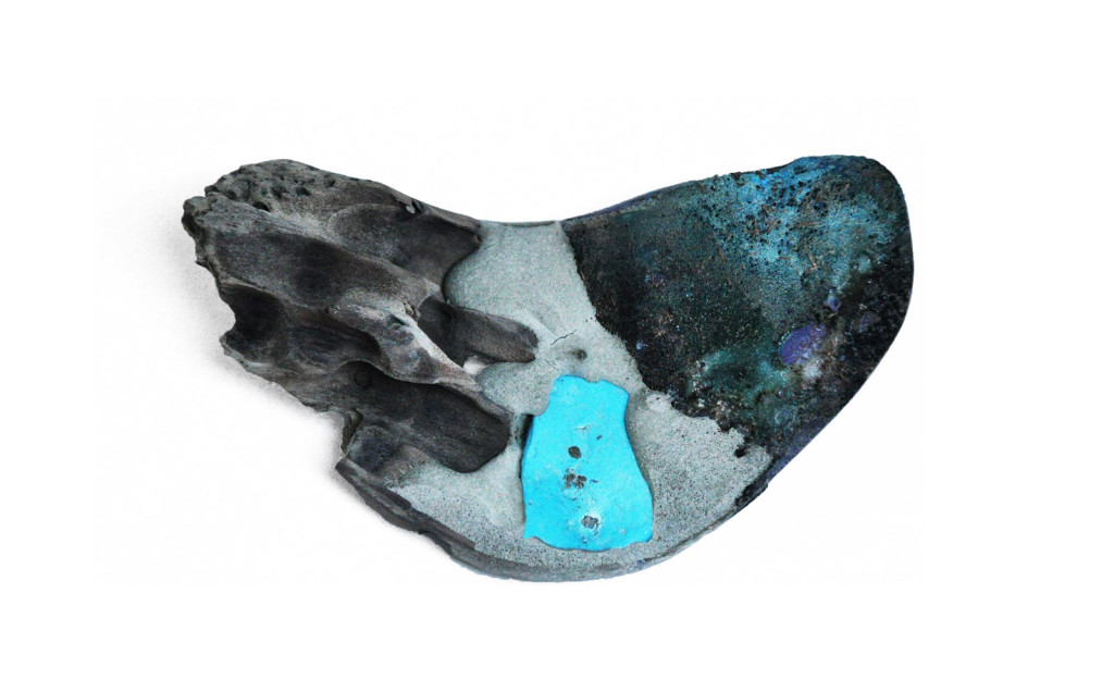 spilla | turchese, terra, plastiche riciclate, legno, cemento, acciaio
